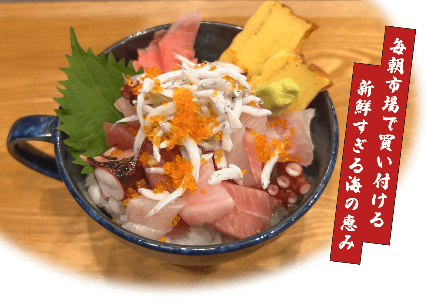 定番の海鮮丼はもちろん、焼き物・煮物・