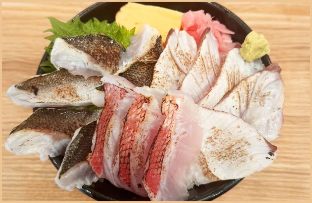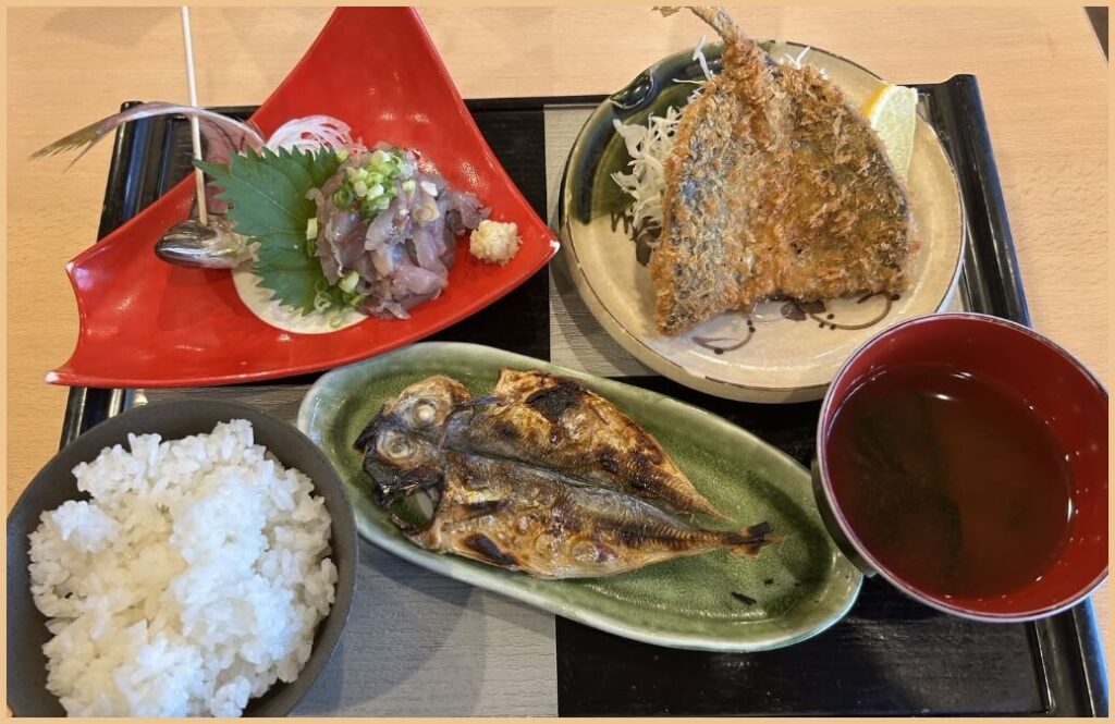 ・ご飯は酢飯/大盛・小盛の選択可 ・地魚フライ、味噌汁付き